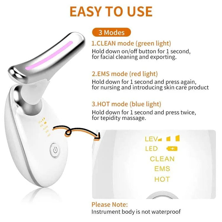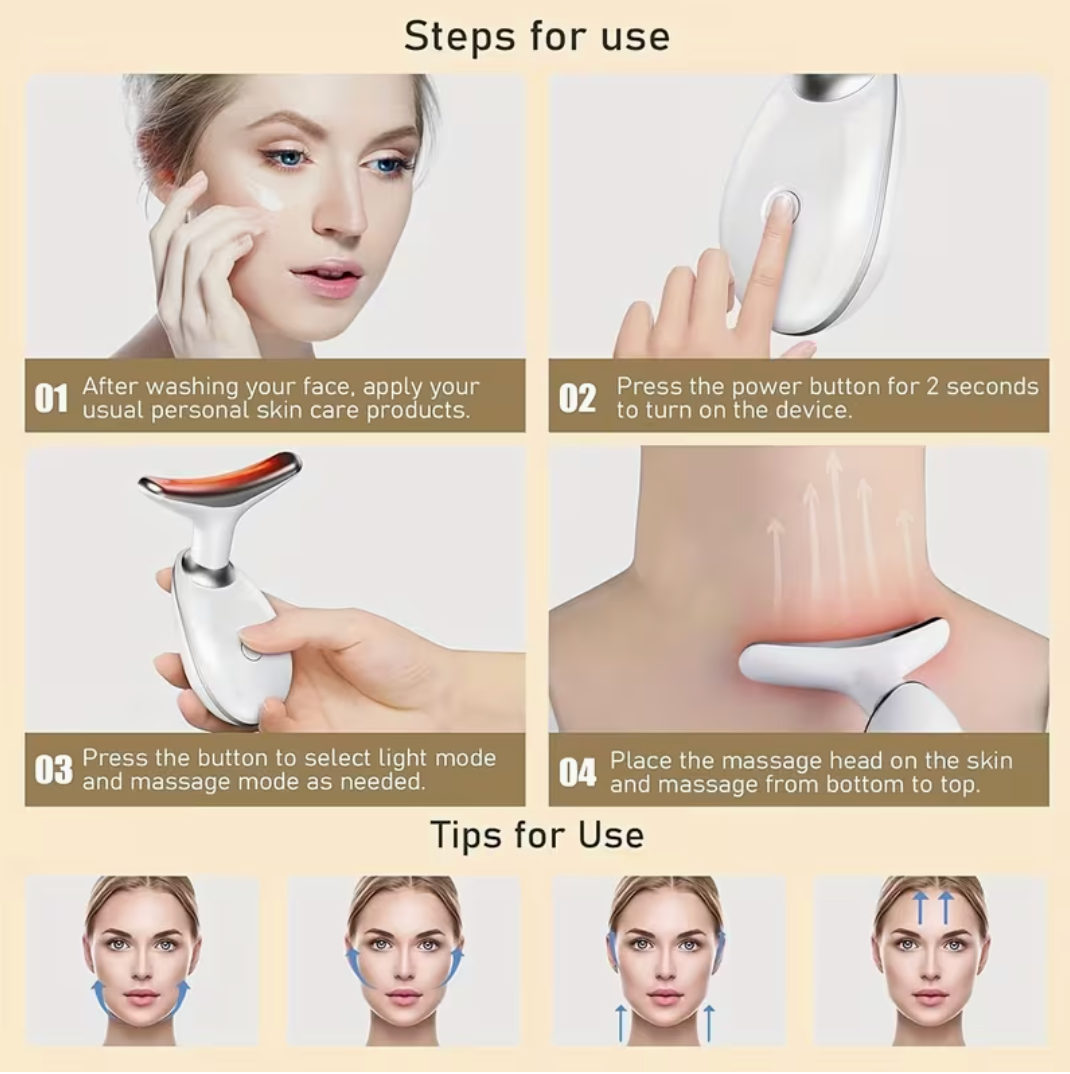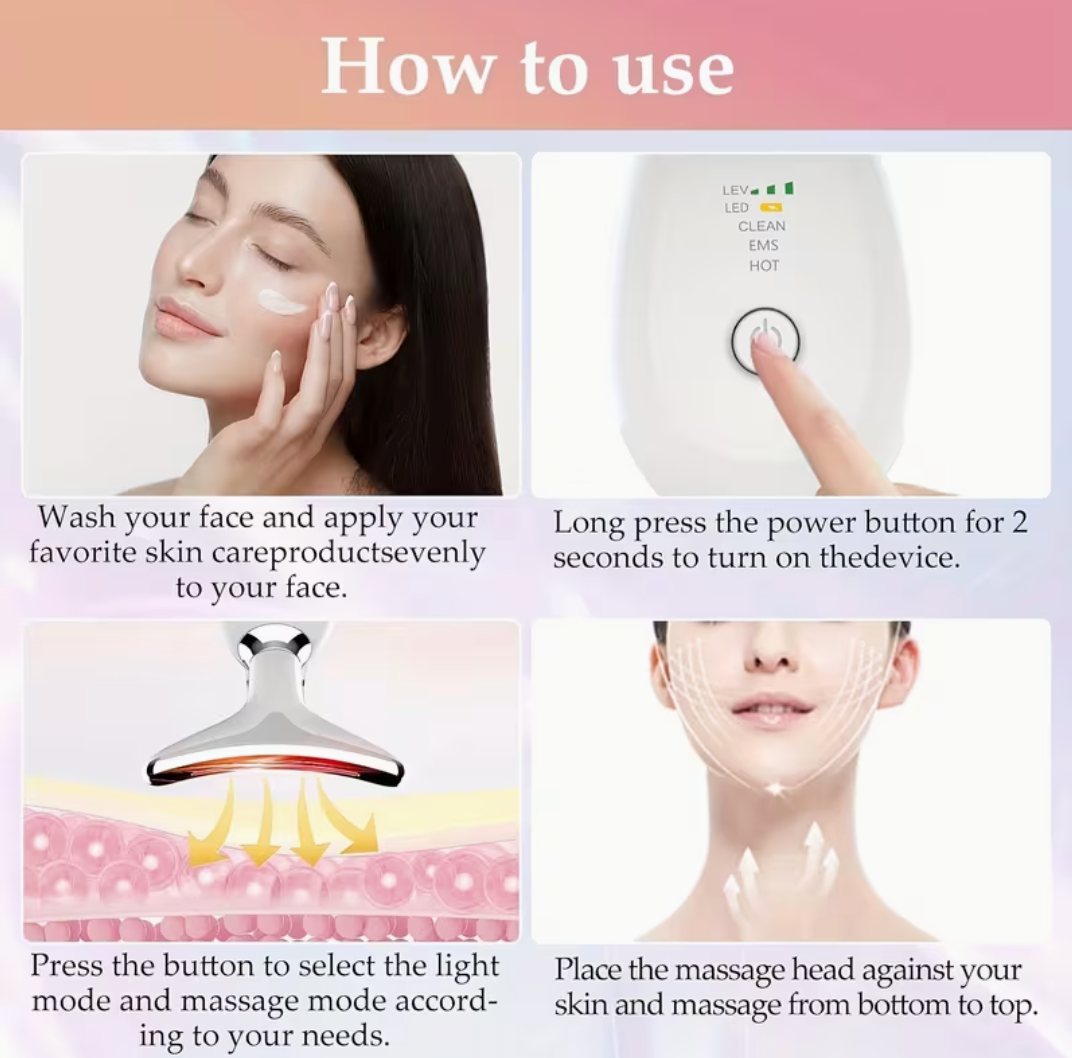 This device is perfect for the face, neck, jawline, cheeks, forehead, and even under-eye areas—anywhere you want lifting and tightening effects.